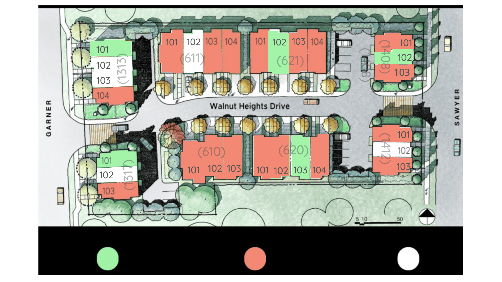 Green: Available  // Red: Sold //   White: Available later in 2025